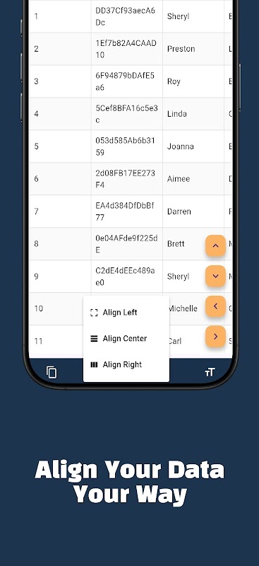 Le impostazioni di allineamento del testo consentono di allineare il contenuto a sinistra, al centro o a destra per un aspetto più pulito. Inoltre, Easy CSV Reader consente di esportare i dati in PDF,
