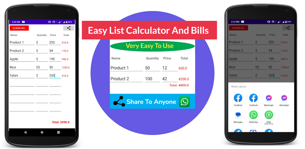 Calcolatrice elenco facile e fatture | Calcola e condividi con chiunque