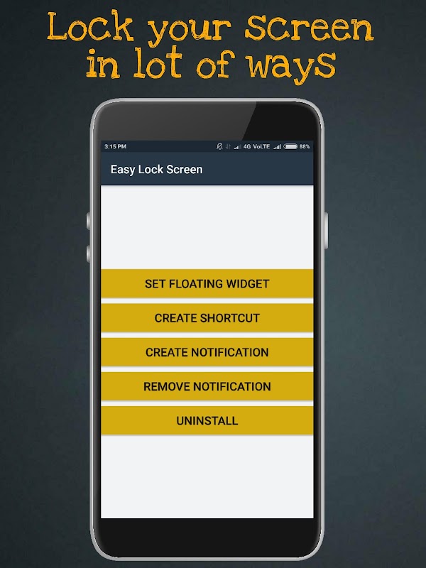 1) Lock your screen by clicking the floating widget that is available over your screen anytime and over any app.