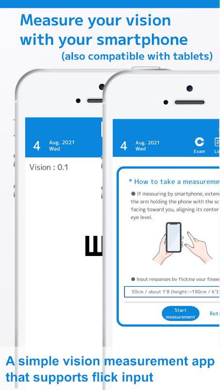 A differenza delle app per l'esame della vista in cui inserisci la tua risposta toccando un pulsante, questa app utilizza l'input rapido, consentendoti di mantenere una postura naturale durante il test anche durante la misurazione con uno smartphone.