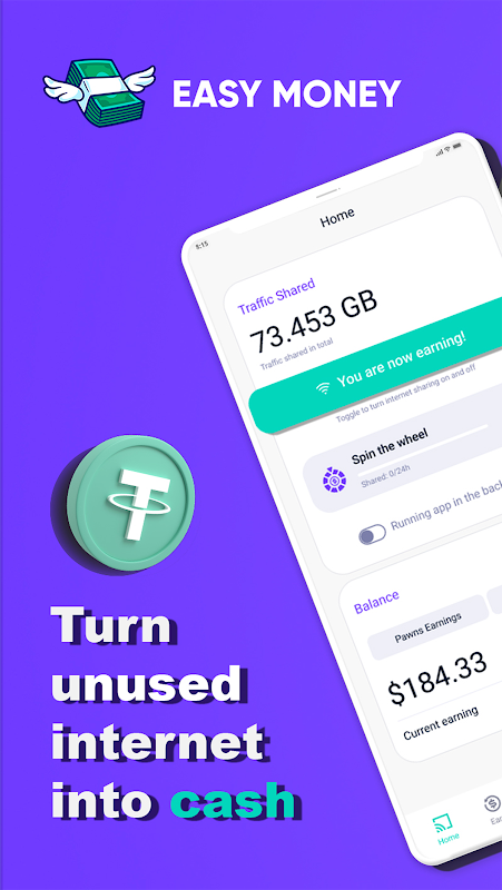 Siamo lieti di invitarti a Easy Money, un'applicazione innovativa che ti consente di trasformare il tuo traffico Internet inutilizzato in una fonte di reddito passivo.