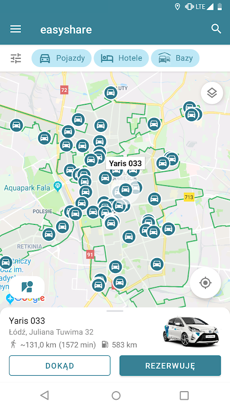 easyshare carsharing - Auto per minuti a Poznań e Łódź e Tri-City.