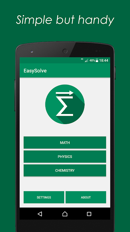 EasySolve will surely help you out in school! This app makes finding the most useful formulas and solving math, physics and chemistry exercises way easier. Just fill the blanks and let the app do the job for you!