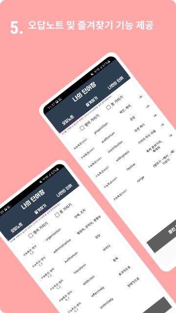 2. Per aiutarti a memorizzare le parole inglesi, abbiamo aggiunto una funzione che ti consente di nascondere l'ortografia inglese o il significato coreano della parola.