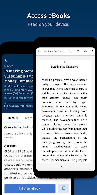 Accedi agli eBook direttamente dall'app e trova le informazioni sull'accessibilità nella scheda dettagliata dell'eBook.