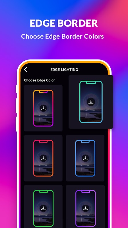 -> Colori per l'illuminazione dei bordi - Carta da parati Borderlight che ti offre un incredibile gradiente brillante di bordi Light & Wallpaper Maker.