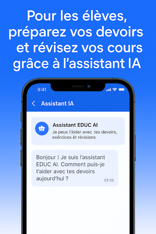 EDUC AI è un'applicazione intelligente che facilita il monitoraggio scolastico per genitori, studenti, insegnanti e amministrazioni. Appunti, assenze, orari, compiti, messaggistica privata e assistenza AI: tutto è centralizzato per una scuola più efficiente.