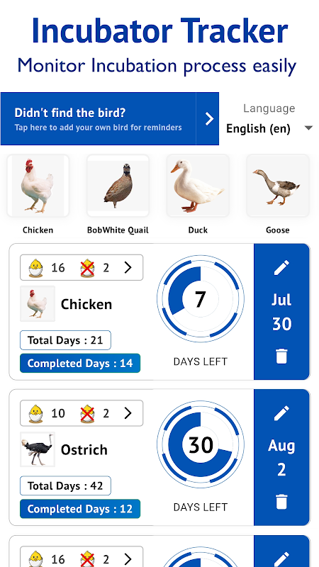 Tieni traccia di tutti i tuoi incubatori ora con un'applicazione facile da usare che contiene tutte le informazioni necessarie per completare l'intero processo.