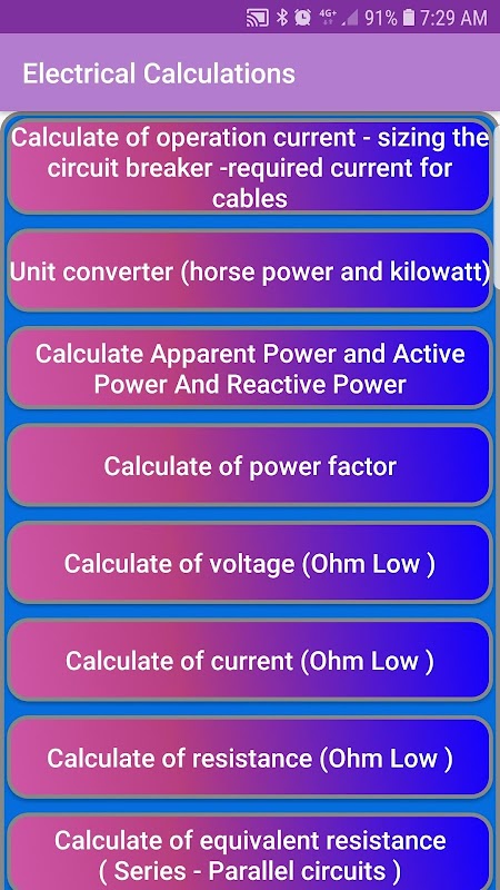 This application does the necessary calculations for electricians whether engineers or technicians