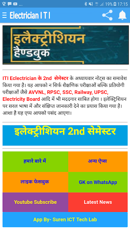ITI Electrician 2nd Sem Theory Handbook in Hindi Mobile App è utile per tutti gli esami elettrici.