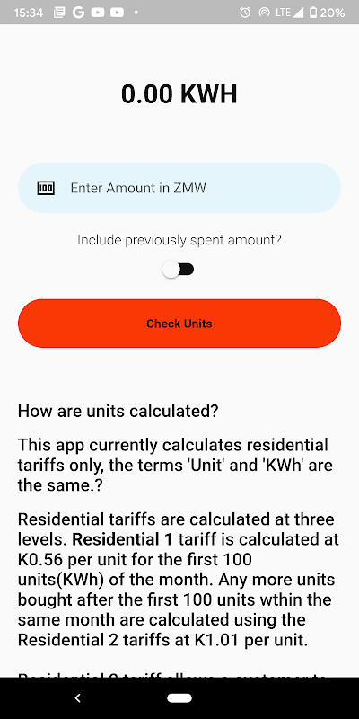 I calcoli sono accurati per gli utenti dello Zambia sui contatori Zesco e verranno aggiornati su eventuali modifiche tariffarie.