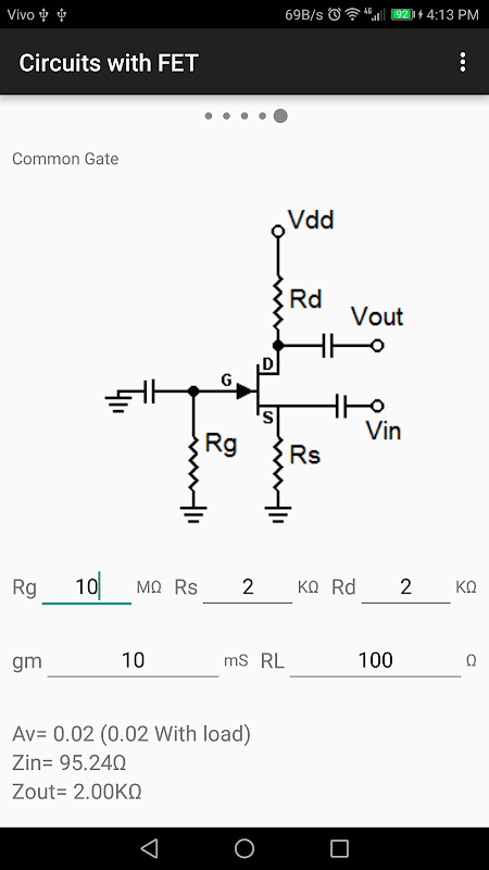 Utilizzando il modello H semplificato e il modello transconduttanza FET, questa applicazione calcola il guadagno di tensione (Av), impedenza di ingresso (Zin) e impedenza di uscita (Zout) dell'emettitore comune AC circuiti emettitore comune senza bypass, collettore comune, base comune, fonte comune, fonte comune senza bypass, drain comune e porta comune.