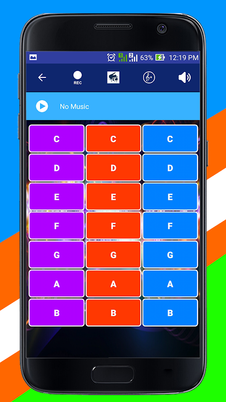 Music tools and notes (Do-C, Re-D, Mi-E, Fa-F, Sol-G, La-A, Si-B) to play music instrument and create your music, electro beats and your songs to music recording.