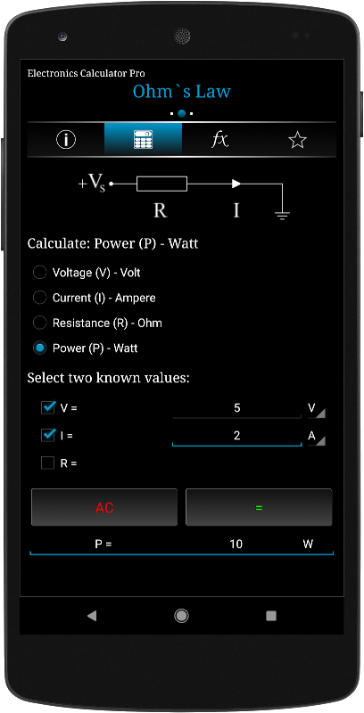 Electronics Calculator Pro è un'applicazione di utilità composta da vari calcolatori, conversioni, tabelle di riferimento, pin out e calcolatrice tascabile di base.