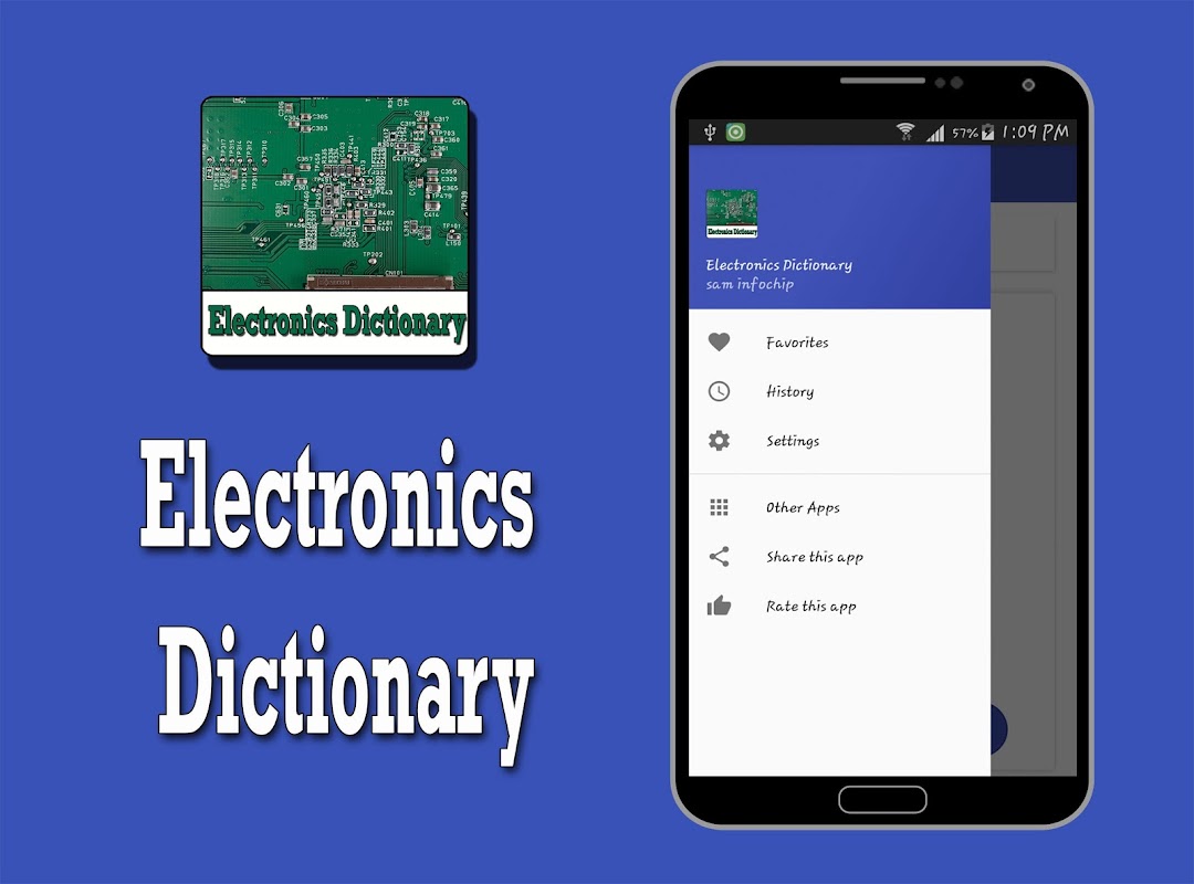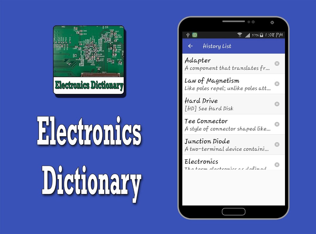Whatever you are student or professional this free Electronics dictionary app will help you find clear and accurate definitions right on your phone or tablet.