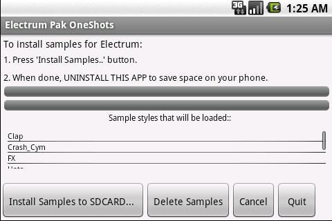 I campioni verranno installati sul tuo sdcard in / sdcard / electrum / samples / electrumPakOneShots.
