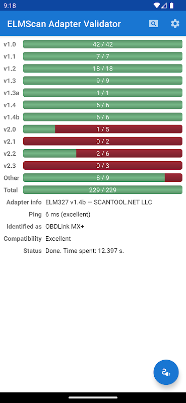 ELMScan Adapter Validator è progettato per determinare la versione dei cloni ELM327. L'applicazione invia un gran numero di comandi ELM327 standard e analizza la risposta degli adattatori a questi comandi.