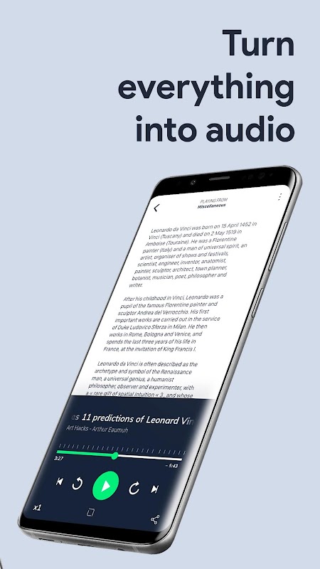 Choose between new and improved voices, powered by text-to-speech. Test them and change them depending on your mood, what you’re listening to and your productivity goals. You can also increase the speed of reading to read faster!