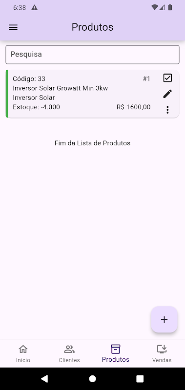 Assumi il controllo finanziario della tua azienda in modo efficiente con Elo Solar. Registra tutte le transazioni di vendita e di servizio direttamente nell'applicazione, dove potrai anche tenere traccia dei diversi metodi di pagamento utilizzati. Inoltre, gestisci i tuoi debiti e crediti in modo integrato, garantendo una visione chiara e aggiornata della salute finanziaria della tua azienda, sia tramite computer che tramite cellulare.