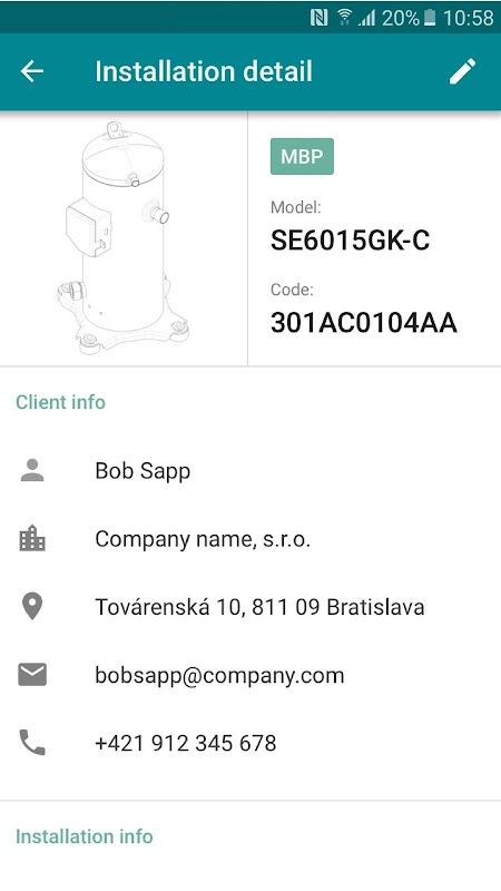 Accessing all the information from the office allows the technician to track all the installations. This tracking is particularly useful for cutting paperwork. On-site use of the application is even more useful – the technician can access compressor’s parameters and scan the compressor’s barcode right into the system.