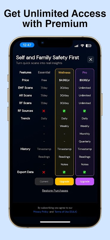 Trasforma il tuo telefono in un rilevatore di campi elettromagnetici professionale. Scopri la rivoluzionaria visualizzazione AR per campi elettromagnetici e un potente scanner RF per l'esposizione Bluetooth, il tutto in un'unica app pulita e attenta alla privacy.