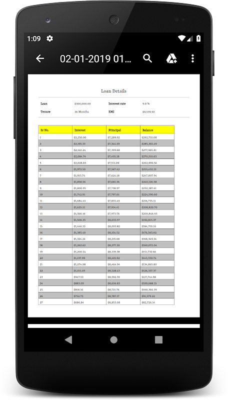 View emi details throughout period of loan.