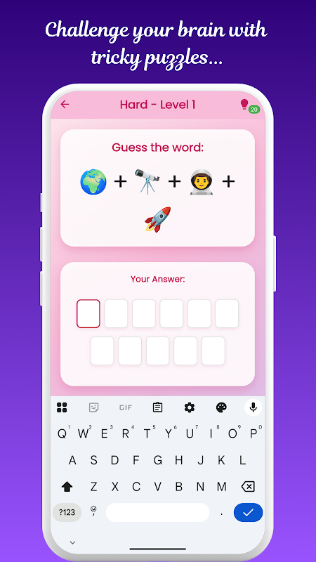 Ogni livello mostra una combinazione di emoji: la tua sfida è indovinare la parola, la frase, il film, il cibo, il marchio o il concetto che rappresentano. Sembra facile? Ripensaci! I puzzle iniziano semplici ma diventano rapidamente difficili, rendendo ogni livello un divertente allenamento per la mente. 💡