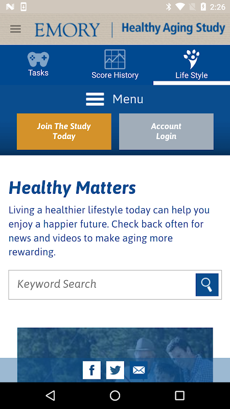 Questa applicazione ti aiuta a diventare una parte di studio Healthy Aging di Emory.