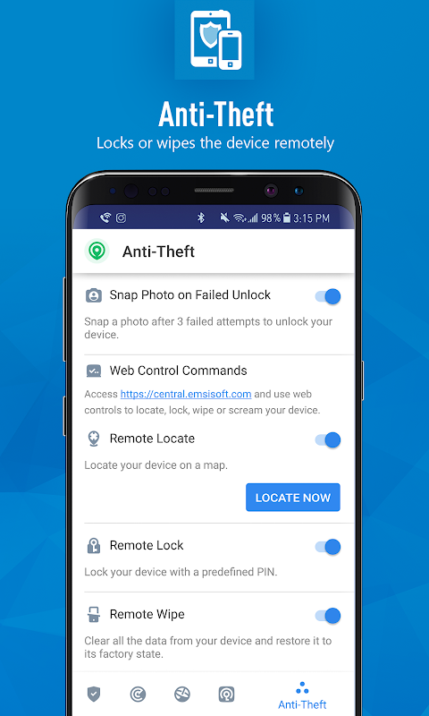 ● Anti-Theft: blocca, traccia e svuota il tuo dispositivo da remoto se viene perso o rubato.