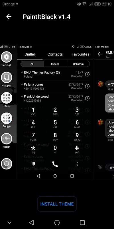 - tutti i temi avaiable attraverso la nostra applicazione sono progettati solo per i dispositivi con EMUI 5 / 5,1 / 8 (ad esempio: Huawei P9, P10 Huawei, Huawei Mate 9, Huawei Mate 10, Onore 8, 9 Onore, Onore V10 e altri). Prima di installare qualsiasi tema si prega di verificare se il telefono dispone di EMUI 5 o 8 sistema (andare su Impostazioni / Informazioni su).