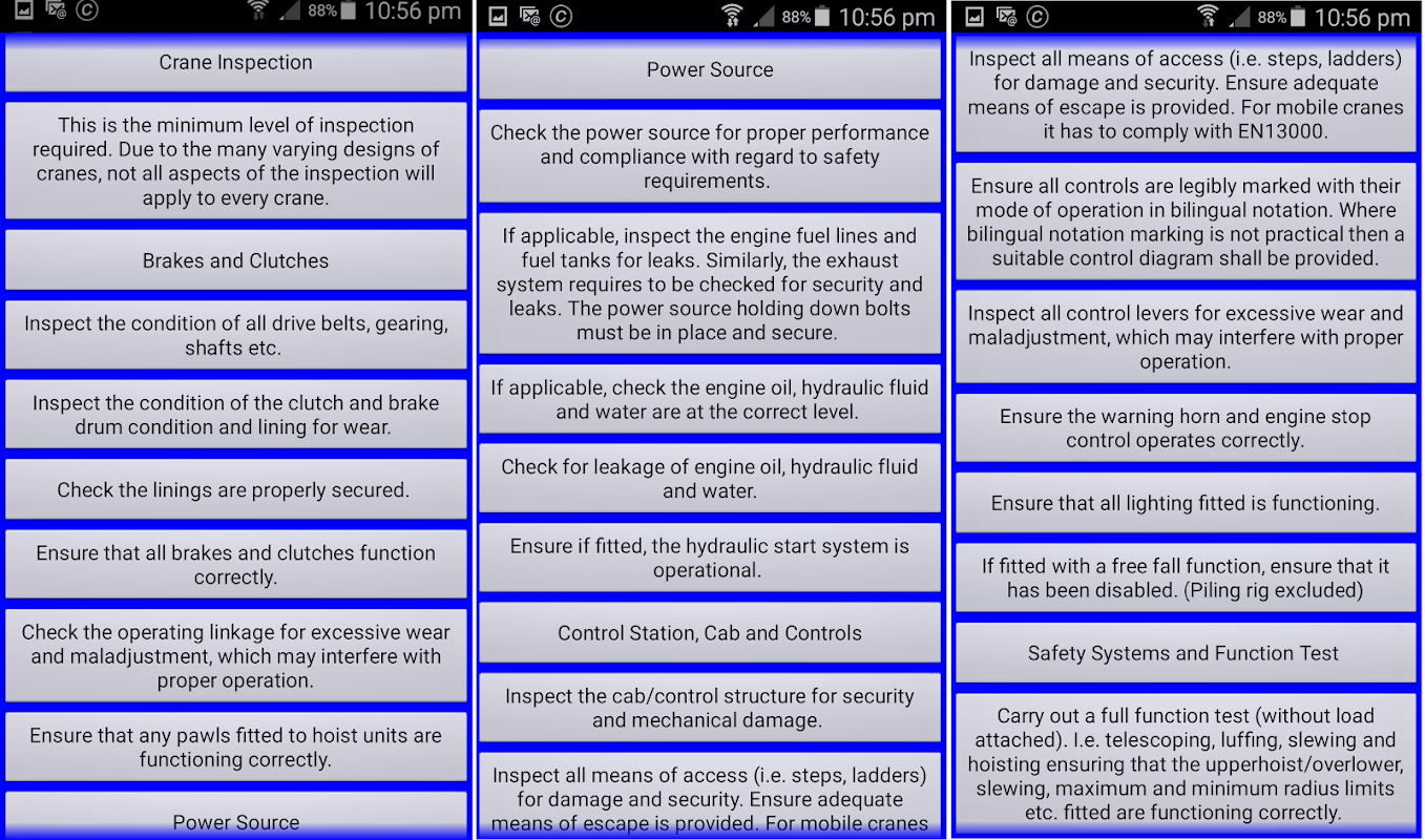 Due to the many varying designs of lifting equipment & safety recommendation for different industry sectors, not all aspects of the inspection criteria will be covered.