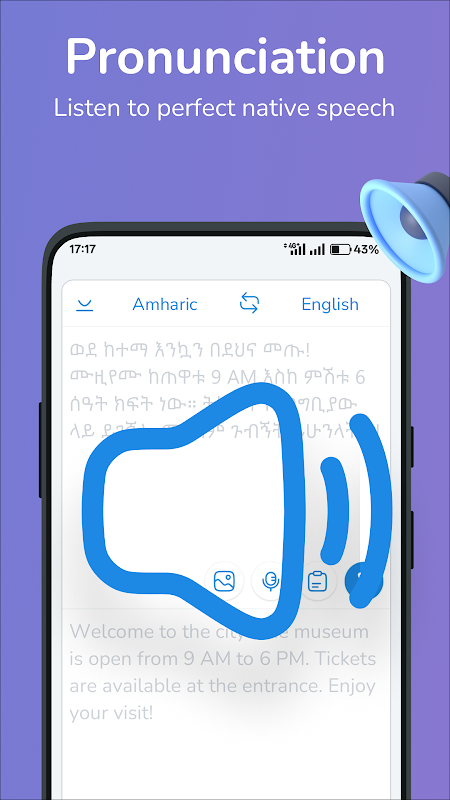 - Traduzione rapidissima: ottieni traduzioni istantanee anche di paragrafi complessi dall'inglese all'amarico e dall'amarico all'inglese
