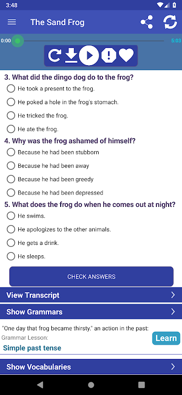 Forniamo anche ascolto in inglese e metti alla prova la tua capacità di ascolto nell'app.