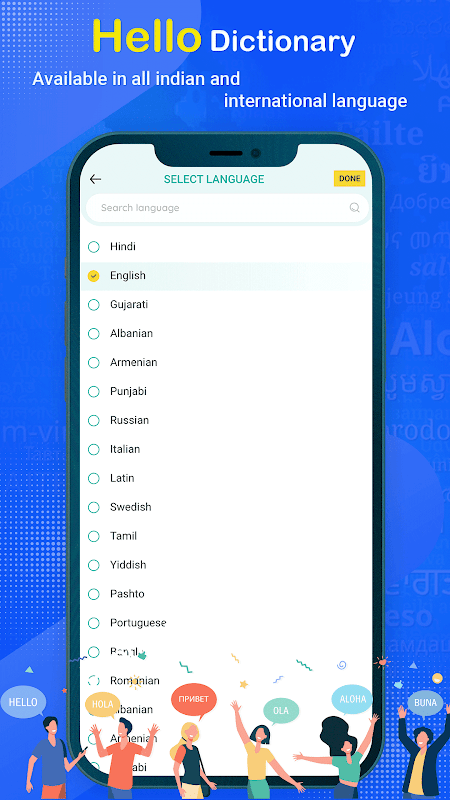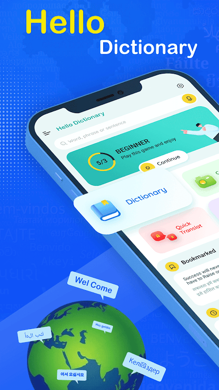 Hindi English TranslatorApp is Made in India Dictionary and translator app with English to Hindi Dictionary & English to Hindi translation. Hello Dictionary works Offline Dictionary & Translator. Your Dictionary will help you to translate text, voice, conversations, Screenshots & camera photos. In the current situation, English is the global language but only in a few countries, English is the native language. But what about others So here we are with the hello dictionary app. We are trying to solve the biggest problem for non-English speaking countries Like India, Pakistan, Bangladesh, Dubai, Russia, China, Japan, etc. Hello, Dictionary will make it easy to speak & translate. Learn English & Grammar from Hindi, Indonesian, Thai, Japan, Arabic, Malay, Urdu, Malay, Bangladeshi, Bengali, Punjabi, Telugu, Tamil, Kannada, Marathi, Gujarati, Assamese, Malayalam, Chinese, Portuguese, Turkish & Napali. Hello, Dictionary is a complete English Translator & Dictionary App for everyone.