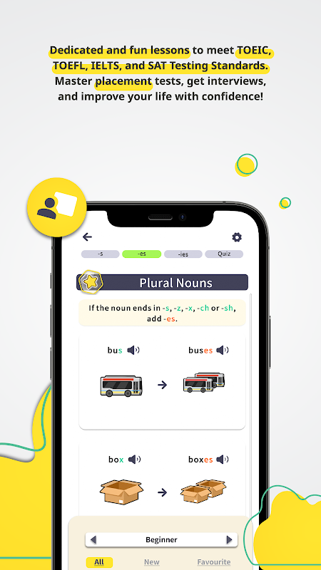 - Minigames: Addicting minigames that let you practice speech, sentence composition, vocabulary, grammar, idioms and everything else associated with mastering English. You won’t want to stop playing!