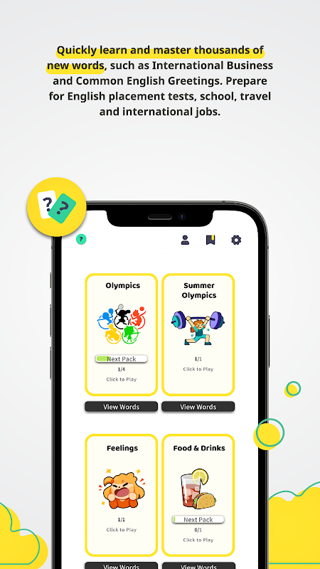 - Theme Words: Every theme words have their own images. Gamified theme words vocabulary practice area that contains thousands of useful words organized by categories like International Business, Covid-19, and Olympics.