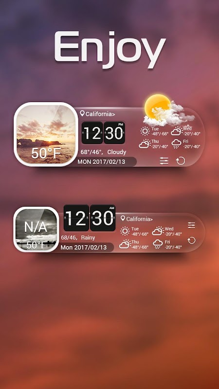 APKPure utilizza la verifica delle firme per garantire download di APK Enjoy GO Weather Widget Theme senza virus per te.