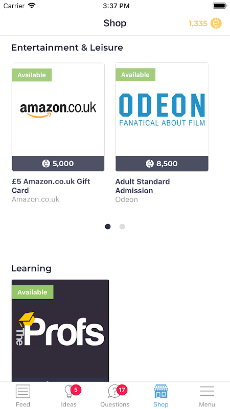 Last but not least, students earn coins while using the app. They can use these coins to buy products and services on campus and online.