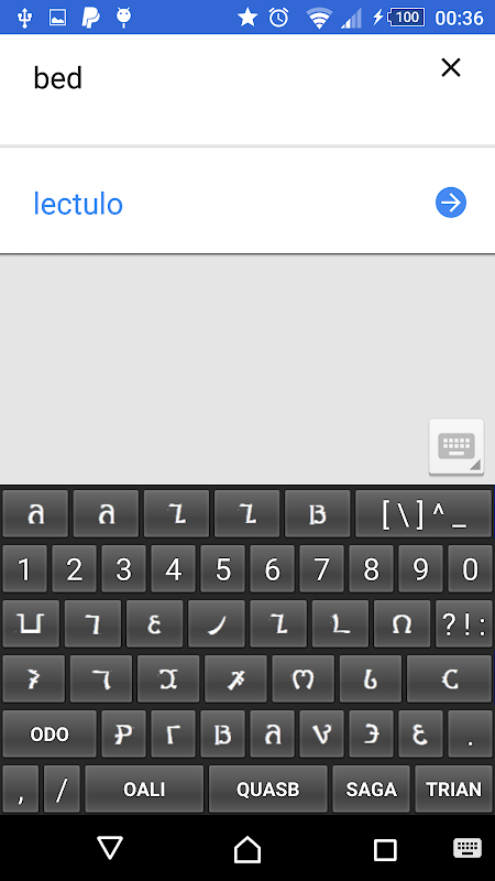 This keyboard contains of Enochian alphabet och produces english characters on screen, a fun way to learn the characters. The keyboard can be selected in settings and will coexist with the normal keyboard used.