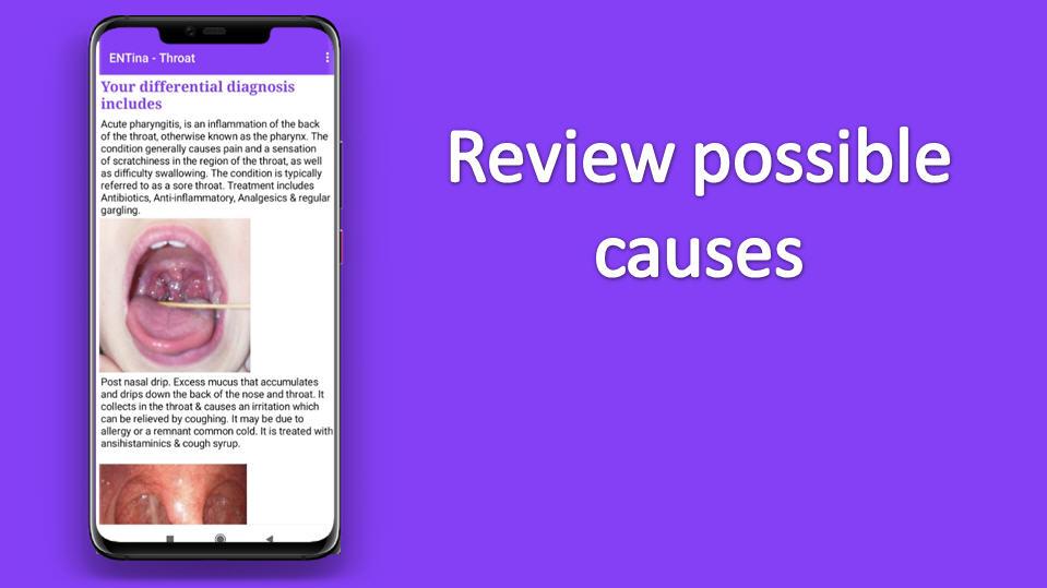 ENTina pone domande semplici e pertinenti e confronta le tue risposte con migliaia di casi simili per aiutarti a trovare possibili spiegazioni per i tuoi sintomi.