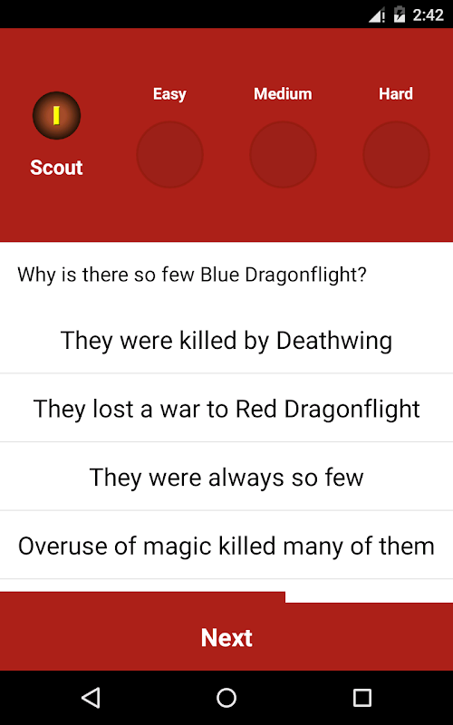 - Sharpen your knowledge on over hundred, mostly lore related, high quality questions.