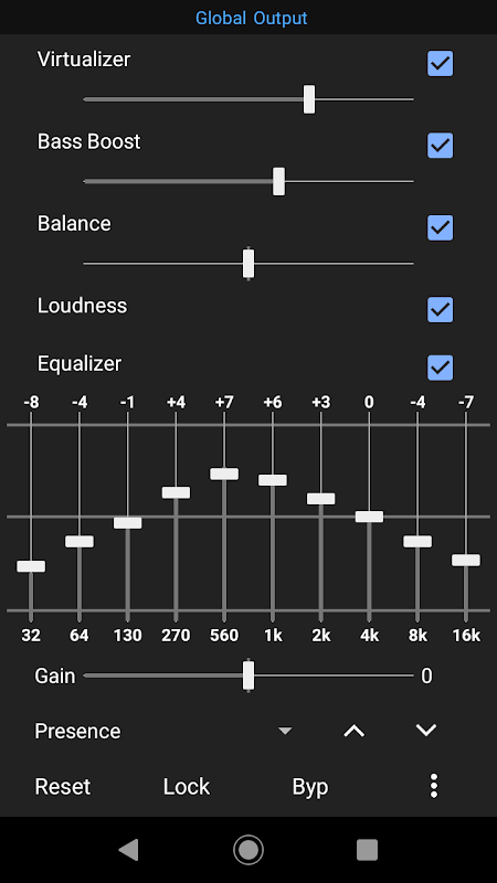 Equalizer FX 10-Band improves sound quality, audio control and sound mixing of your Android device with wide range of audio effects including 10-band equalizer, bass booster, virtualizer, loudness and balance controls that can be used independently.