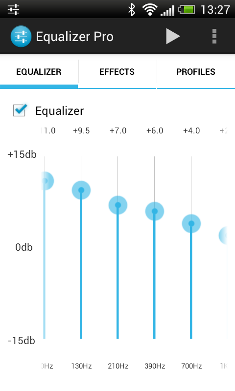 Migliorare il suono del vostro dispositivo Android con una banda di equalizzazione 10. Equalizer Pro consente di regolare i livelli di effetti sonori e la risposta in frequenza del segnale di uscita per un audio del dispositivo. C'è anche un effetti aggiuntivi - Bass Boost per enfatizzare i bassi e la virtualizzazione di ampliare l'effetto stereo.