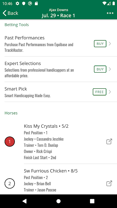 Lo strumento di scommessa Smart Pick ™ è il modo perfetto per determinare su quale cavallo scommettere per quelli che potrebbero non avere il tempo o l'esperienza per analizzare le tradizionali pagine delle performance passate - è facile l'handicap intelligente!