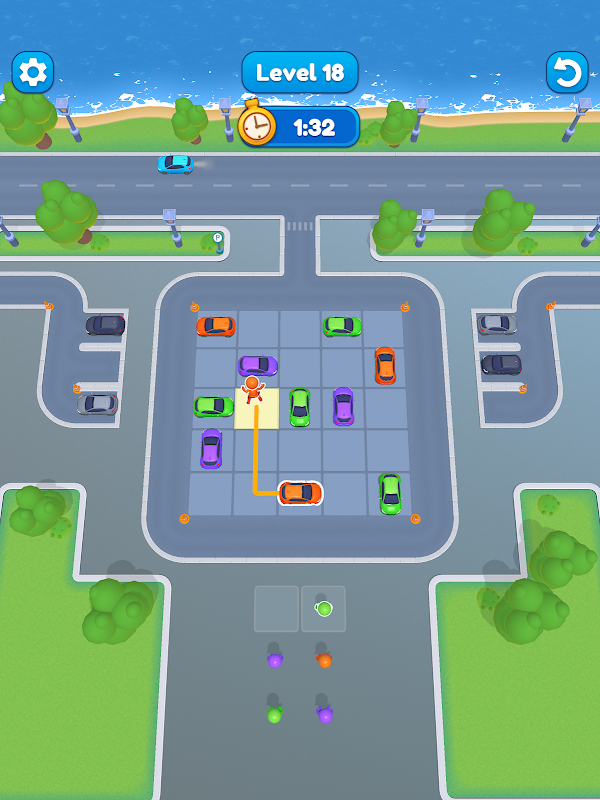 Prendi il comando di un gruppo di personaggi pittoreschi bloccati in un parcheggio affollato! Aiuta ciascuno a trovare l'auto corrispondente, a manovrare attraverso la fitta griglia e a guidarli verso l'uscita. La tua missione è ripulire il lotto accoppiando ogni personaggio con il suo veicolo. Con ogni livello che comporta sfide sempre più difficili ed enigmi del traffico sempre più complicati, pensiero acuto e strategie intelligenti saranno le chiavi del successo. Riuscirai a dominare il caos dei parcheggi e a rivendicare la vittoria?