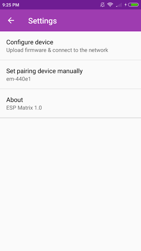 Funziona in modo completamente autonomo e può essere configurato e controllato tramite un'app Matrix ESP, con questa applicazione è possibile creare SmartPhone e Smart Notification basato su IoT ESP8266, configurare e impostare il dispositivo Matrix ESP in modo molto semplice usando questa app con una semplice interfaccia.