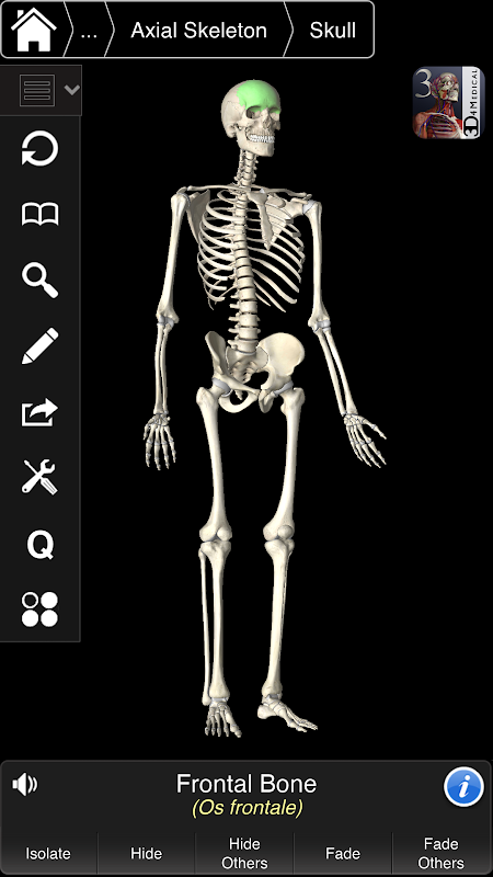 Essential Skeleton 3 is a fully functional, self-contained app covering the essential anatomy of the skeleton. This app is being offered free to demonstrate the groundbreaking 3D technology and innovative design inherent in 3D4Medical's new range of apps.