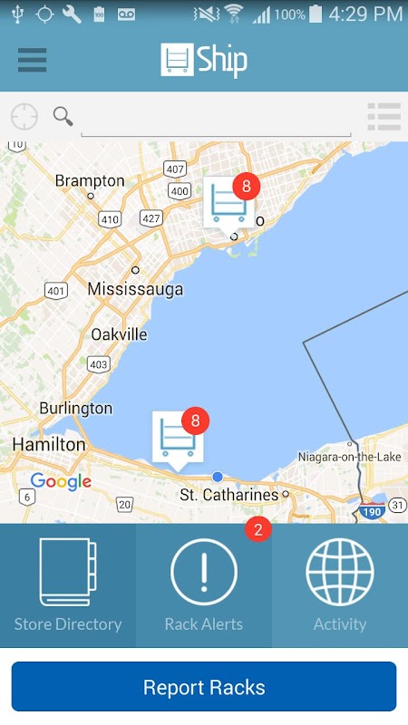 I livelli di inventario vengono aggiornate istantaneamente! Il sistema avvisa l'utente quando cremagliere sono pronti per essere prelevati in un negozio specifico, sulla base di soglie predeterminate che l'operatore serra può impostare per ogni negozio. Nave dà visibilità totale di tutte le rastrelliere per contribuire a ridurre i furti rack e assistere con il recupero.