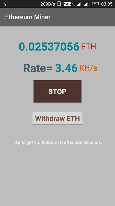 Ethereum Miner is an android application which connects with the mining server to generate ETH.