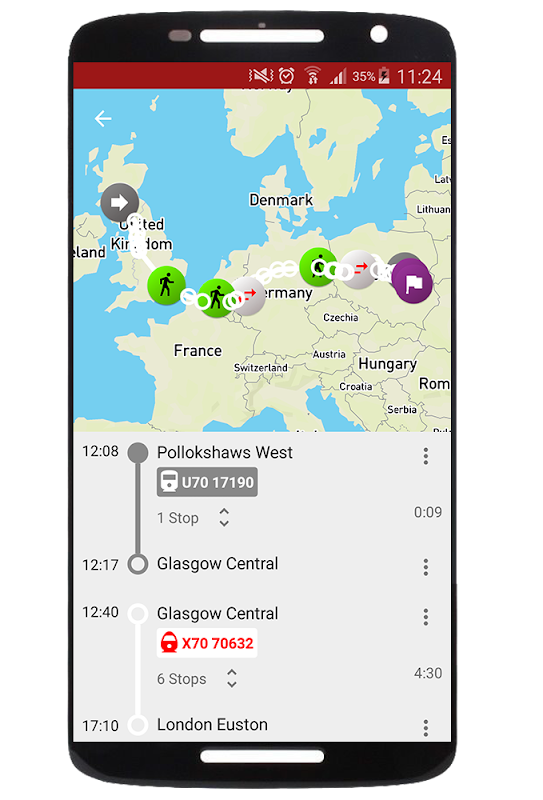 ► Controlla l'ora di partenza e l'orario di arrivo del tuo autobus, tram, treno, metropolitana, con una semplice navigazione sulla mappa che mostra il percorso e la rete di trasporto pubblico d'Europa.